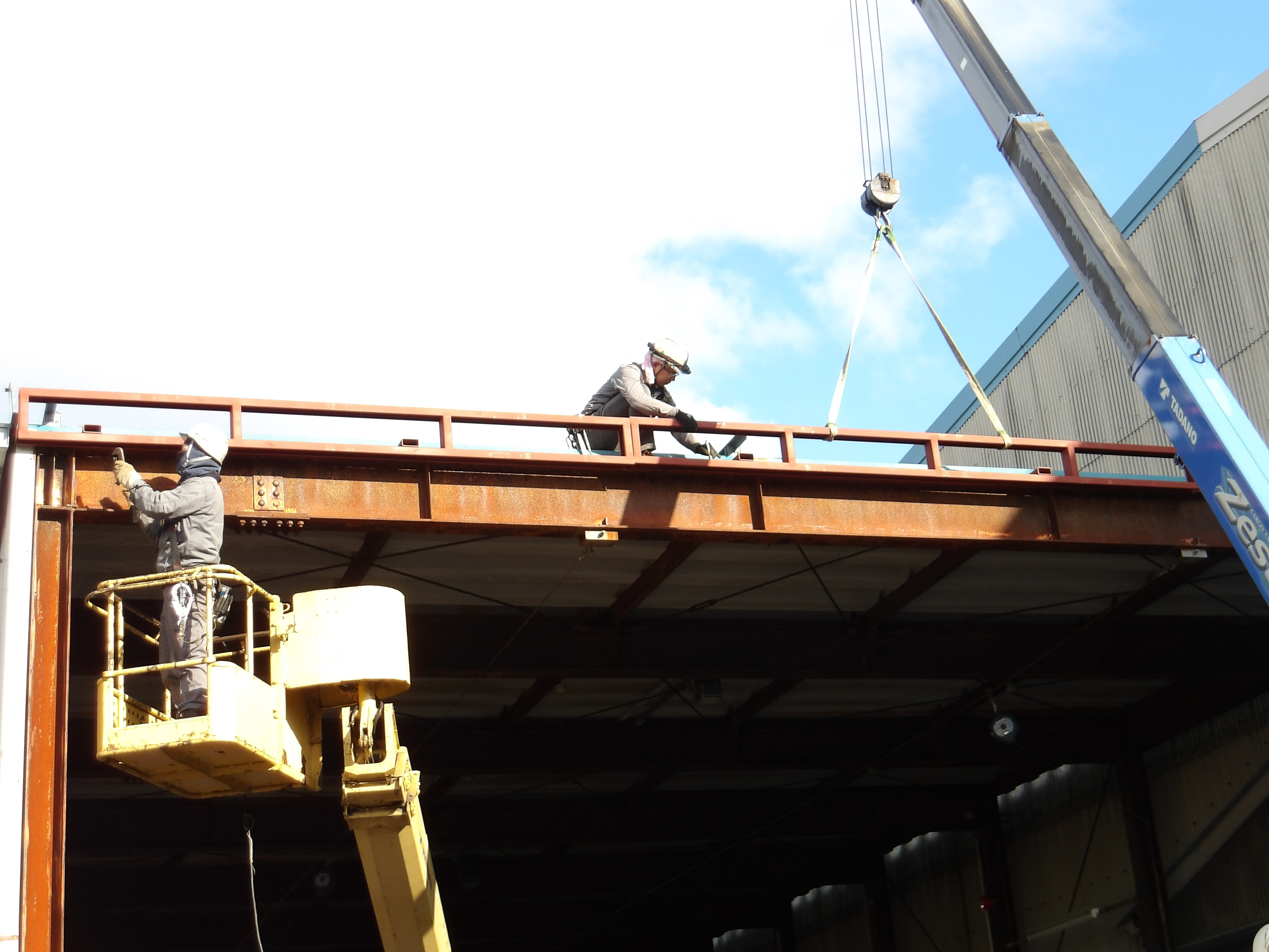 鉄骨で新しい下地を組んでいき、